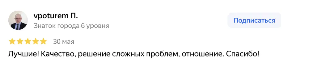 Лучшие! Качество, решение сложных проблем, отношение. Спасибо!