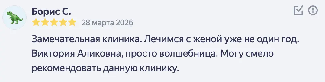 Замечательная клиника. Лечимся с женой уже не один год. Виктория Аликовна, просто волшебница. Могу смело рекомендовать данную клинику.