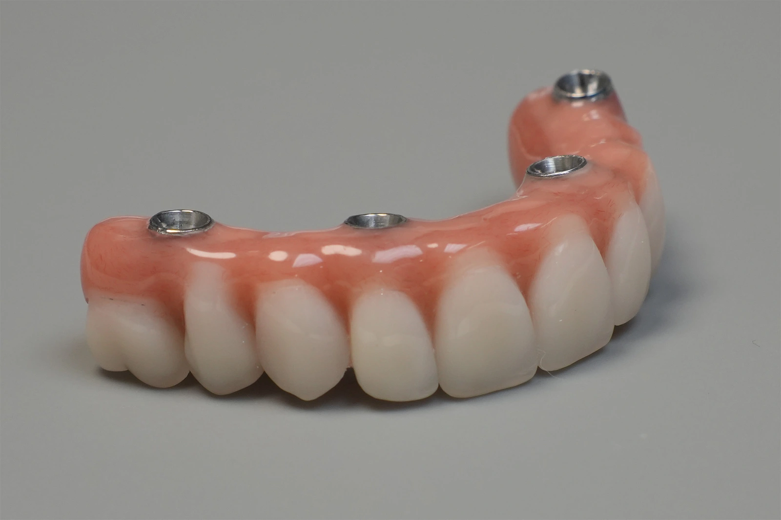 После примерки и окончательных корректировок протез фиксируется на имплантах. Улыбка становится естественной, гармоничной и полностью функциональной. Пациент может уверенно жевать, говорить и жить активной жизнью без ограничений.