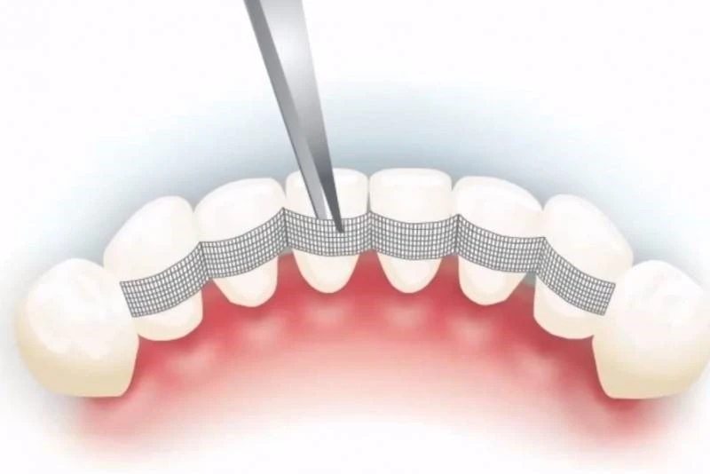 Вантовое. Проводится при легкой и умеренной степени подвижности. Суть процедуры заключается в фиксации нескольких зубов армирующим материалом. Он может быть выполнен из керамического волокна, сверхвысокомолекулярного полиэтилена, стекловолокна. Армирующая конструкция может иметь вид нити, ленты, шнура. Во время установки в эмали по задней поверхности зубов выпиливается горизонтальная канавка, куда укладывается лента, после чего ее покрывают композитным материалом и шлифуют.