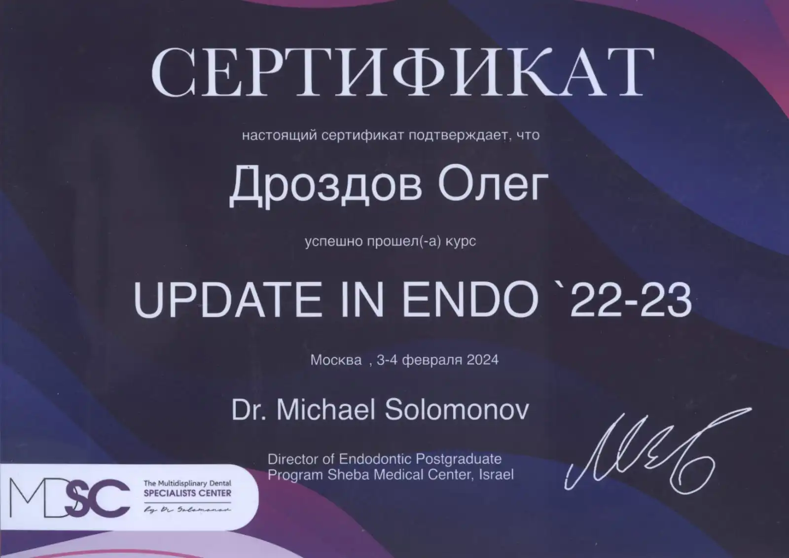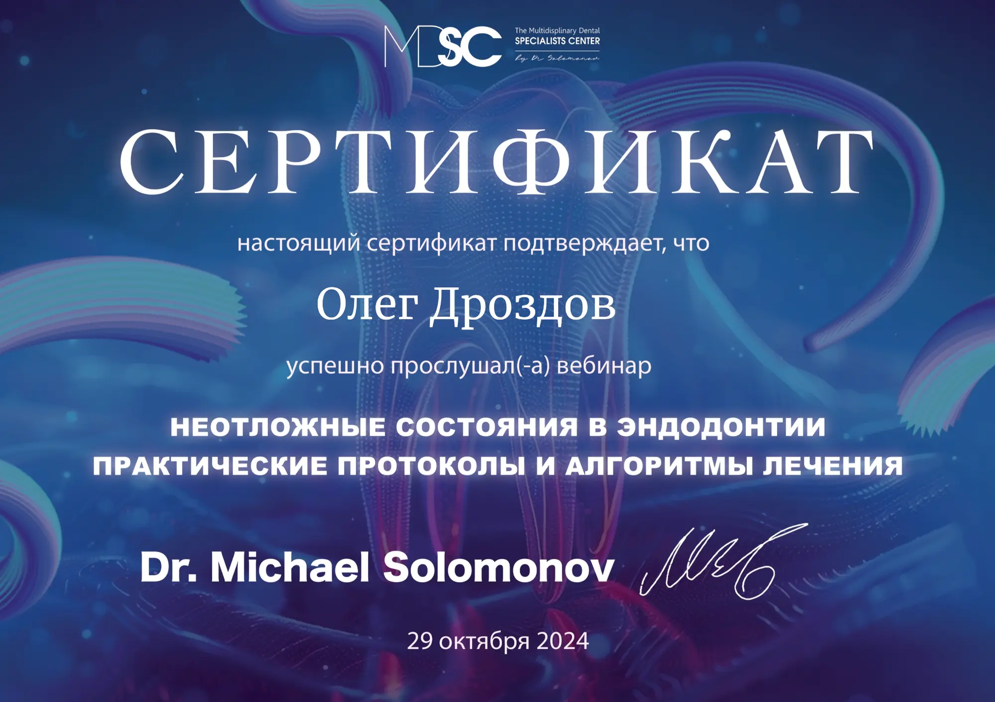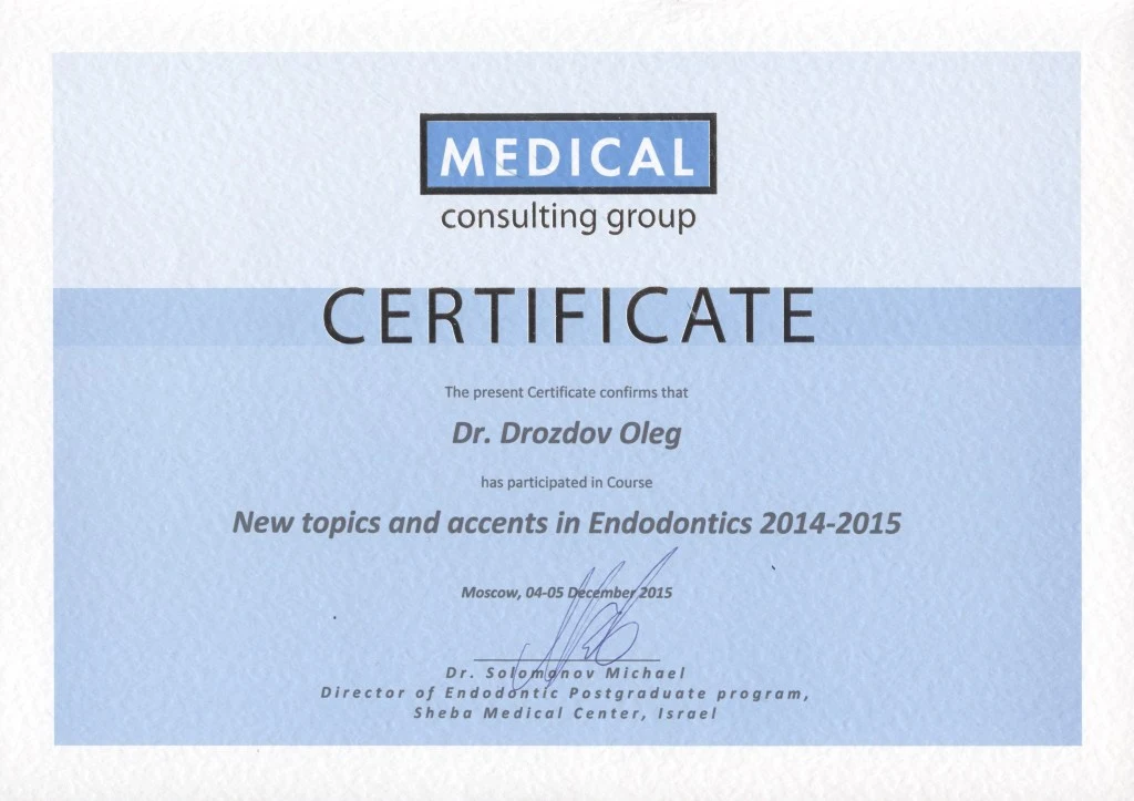 • 2015 г. «New topics and accents in Endodontics», М. Соломонов.