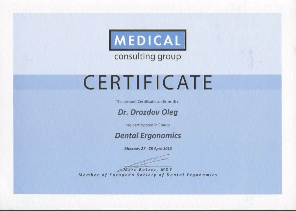• 2013 г. «Эргономика в стоматологии», М. Боцер.