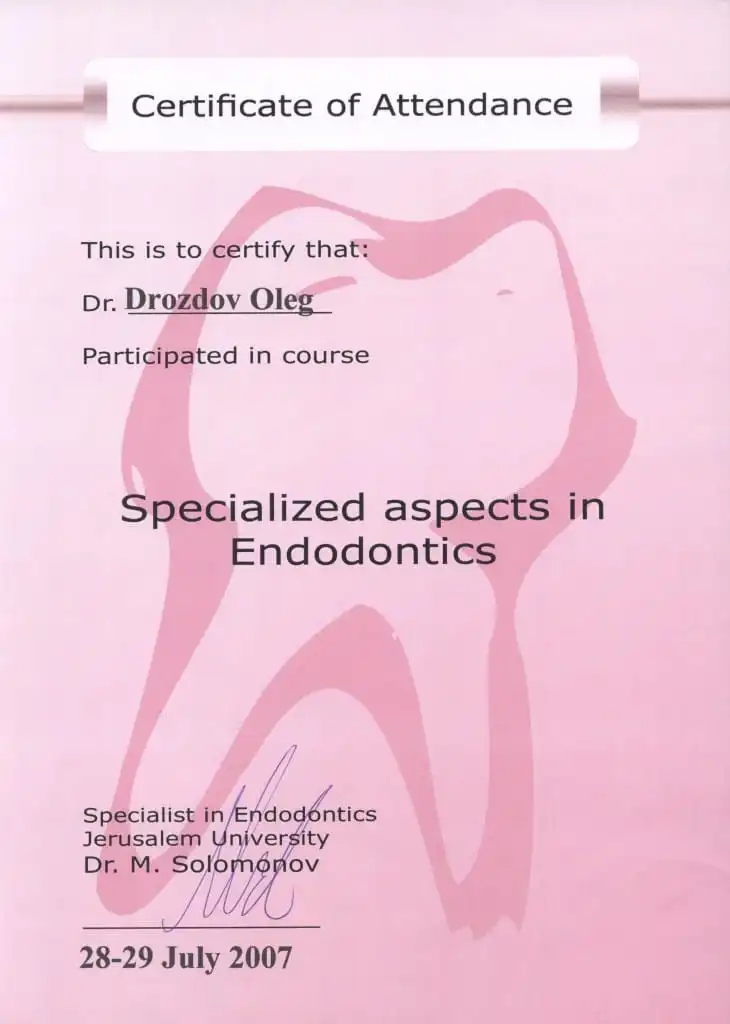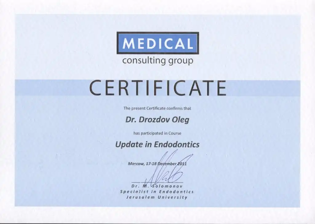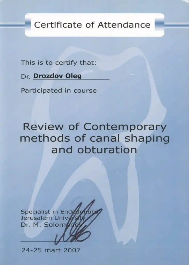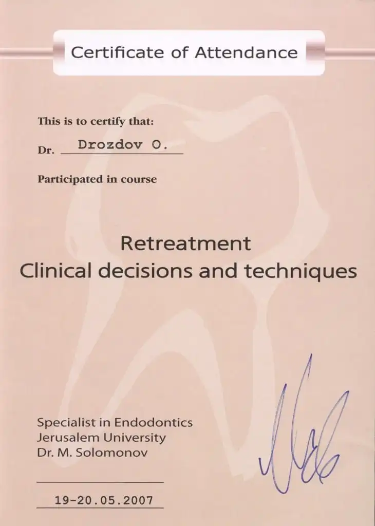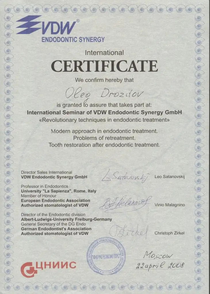 • 2006 г. 2-й интернациональный эндодонтический симпозиум компании VDW «Революционные технологии в эндодонтическом лечении».