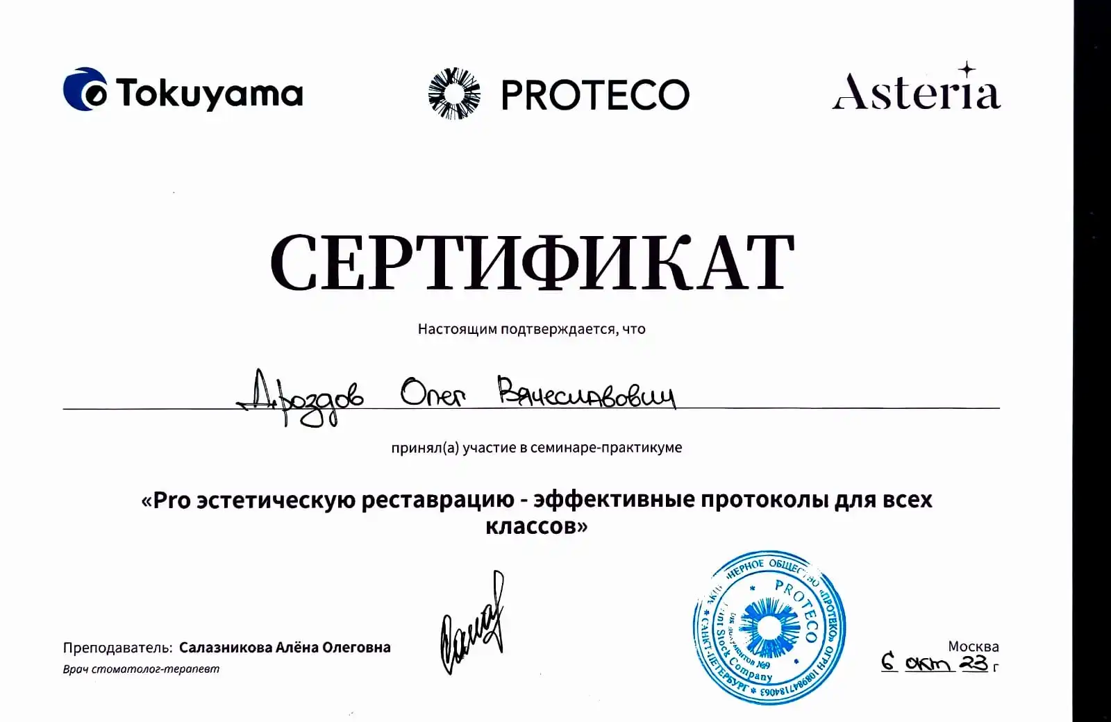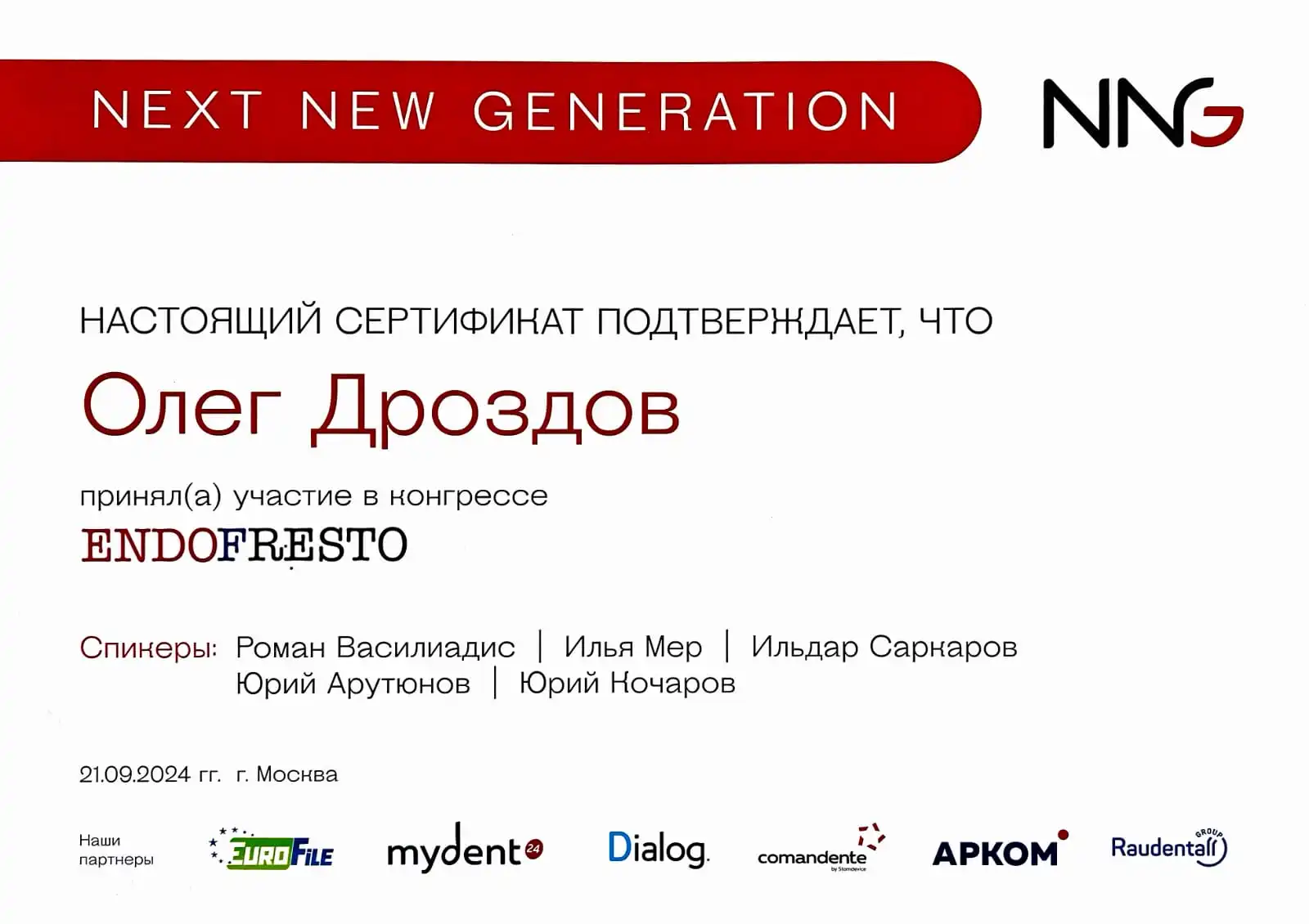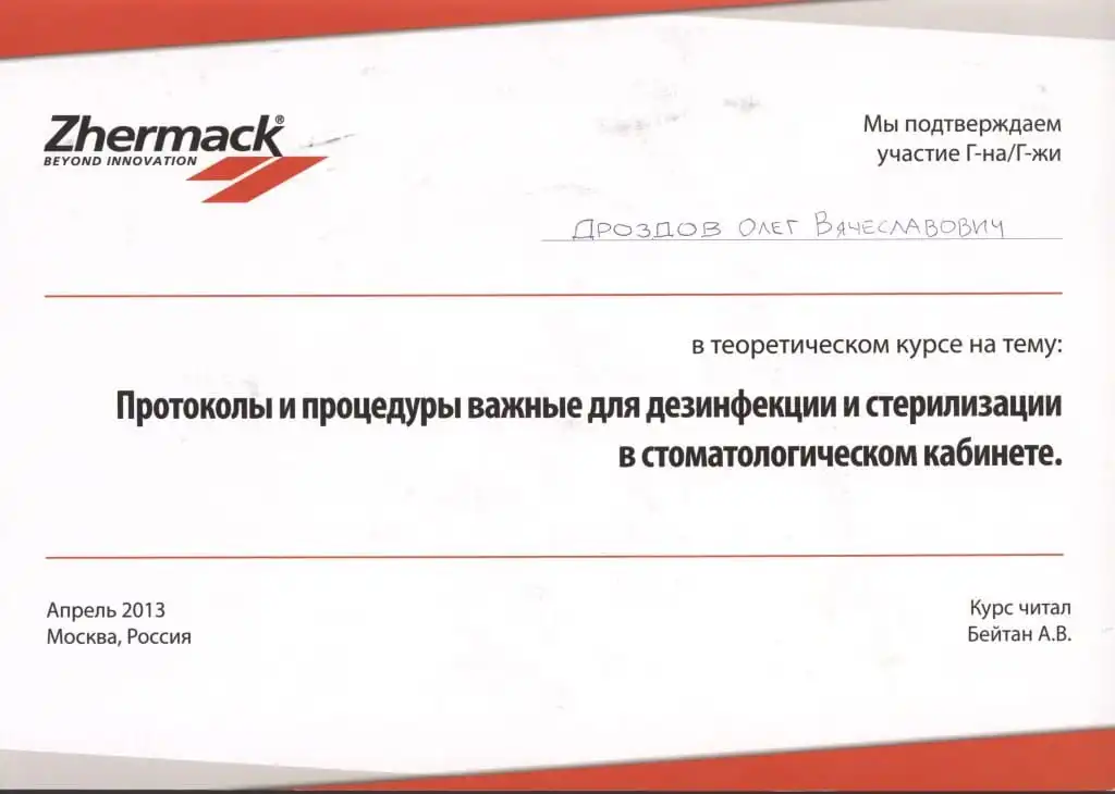 • 2006 г. 2-й интернациональный эндодонтический симпозиум компании VDW «Революционные технологии в эндодонтическом лечении».