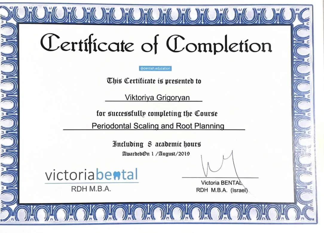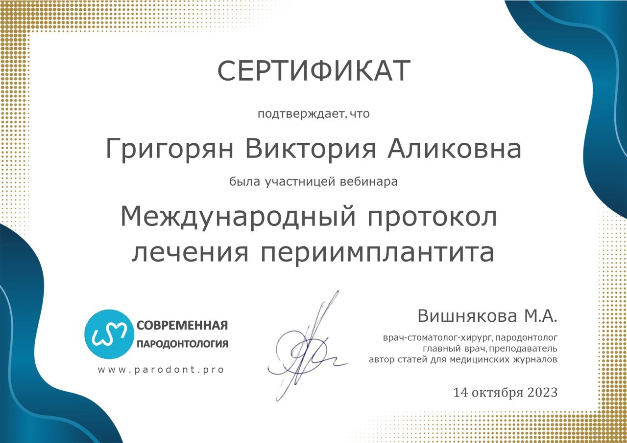 К Григорян Виктории Аликовне я обратилась в первый раз. Решила посетить данного специалиста, потому что увидела у неё "плашку" о том, что этот врач является выбором пациентов, а также обратила внимание на её высокий рейтинг и большое количество отзывов. Впечатление от визита осталось очень хорошее. Врач показалась мне обходительной и вежливой. Думаю, она крайне профессионально подошла к вопросу, поэтому мне всё понравилось. В кабинет меня пригласили вовремя. Приём продолжался около 20-30 минут, наверное, потому что у меня была просто консультация. Сначала Виктория Аликовна провела осмотр, а потом мы сходили и сделали снимки. После этого доктор всё рассказала. Я обратилась к пародонтологу скорее в целях профилактики. Специалист дала рекомендации, дала советы по поводу всех необходимых деталей, а также по уходу - какими зубными щётками пользоваться, как правильно чистить зубы, условно. Если потребуется, я абсолютно точно буду обращаться к Григорян В.А. снова, а также думаю, вполне могла бы порекомендовать её другим.