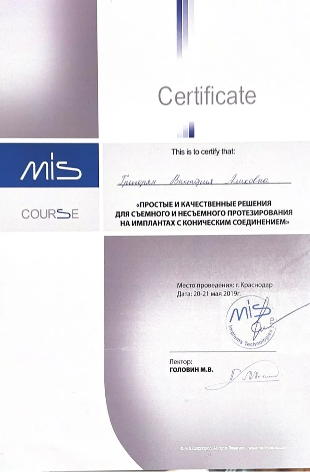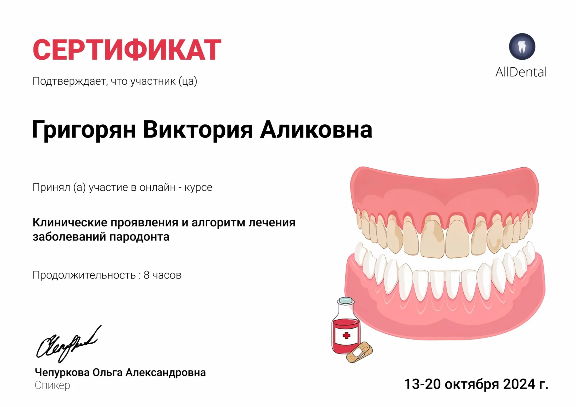 Длительная история лечения зубов, заброшенный случай развития пародонтоза. В клинике «Стомос» наблюдаюсь последние несколько лет. Записался к Виктории Аликовне Григорян на профилактику полости рта и лечение пародонтоза. Виктория Аликовна очень внимательна, комплексно оценивает ситуацию с пациентом. Рекомендует современные лекарства, внимательно подбирает индивидуальные препараты и их сочетание. Хорошо поясняет пациенту ситуацию. Работает тщательно и профессионально.
