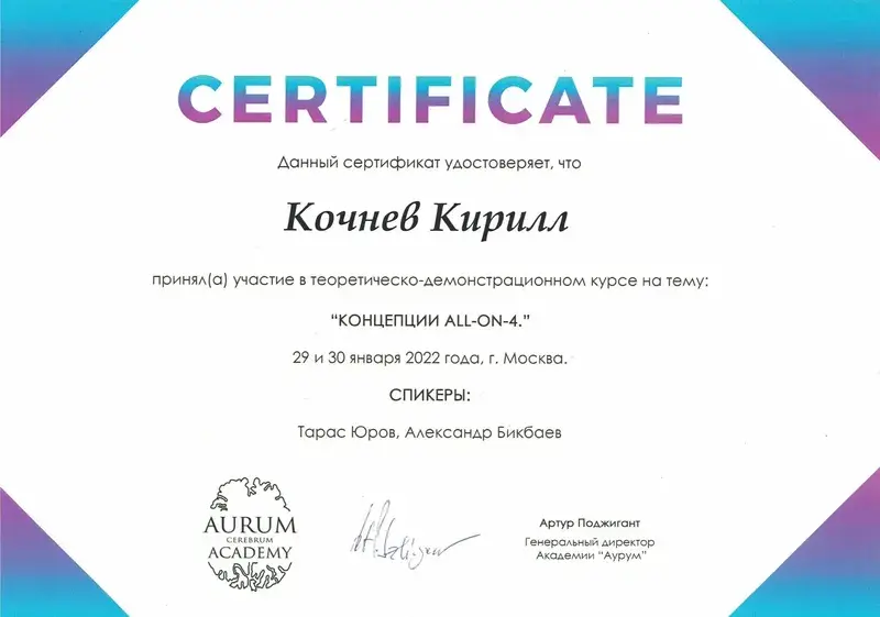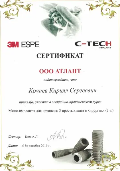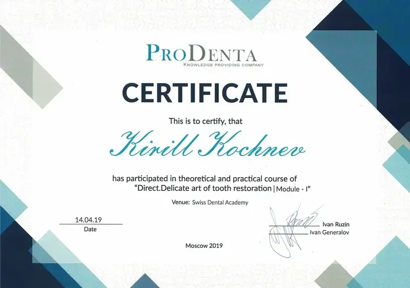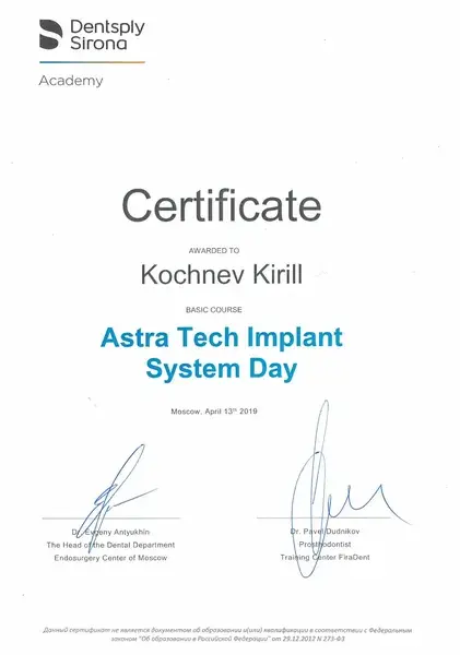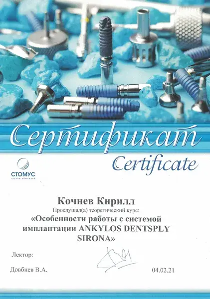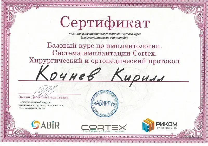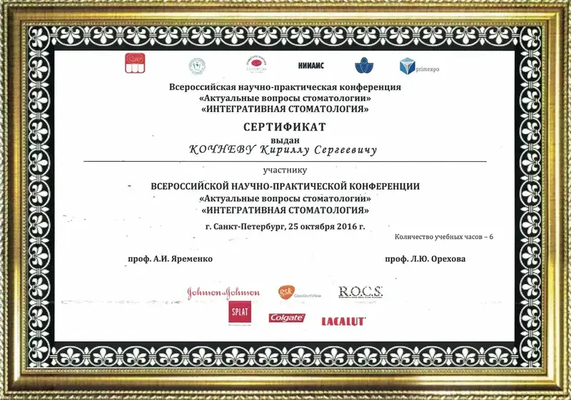 Выражаю большую, искреннюю благодарность доктору стоматологу-ортопеду Кочневу Кириллу Сергеевичу за высокий профессионализм, доброжелательность,понимание всех моих страхов, за подробные ответы на вопросы! Все протезирование проходило очень комфортно! Установили четыре циркониевых коронки и бюгельный протез. Все идеально, и зубы и протез! Также хочу поблагодарить прекрасных докторов: терапевта Сухову Анастасию Александровну, хирурга Тернового Евгения Михайловича, администраторов и руководство клиники за докторов, оборудование и домашнюю атмосферу! Спасибо большое!