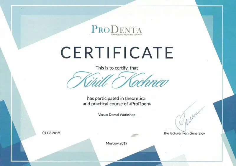 Чудесная клиника, я и моя семья наблюдаемся более 5лет. С большой благодарностью и теплом оставляю отзыв о докторе Кочневе Кирилле Сергеевиче!!! Профессионализм помноженный на обаяние!!! Мастер своего дела, лучший стоматолог-ортопед)))